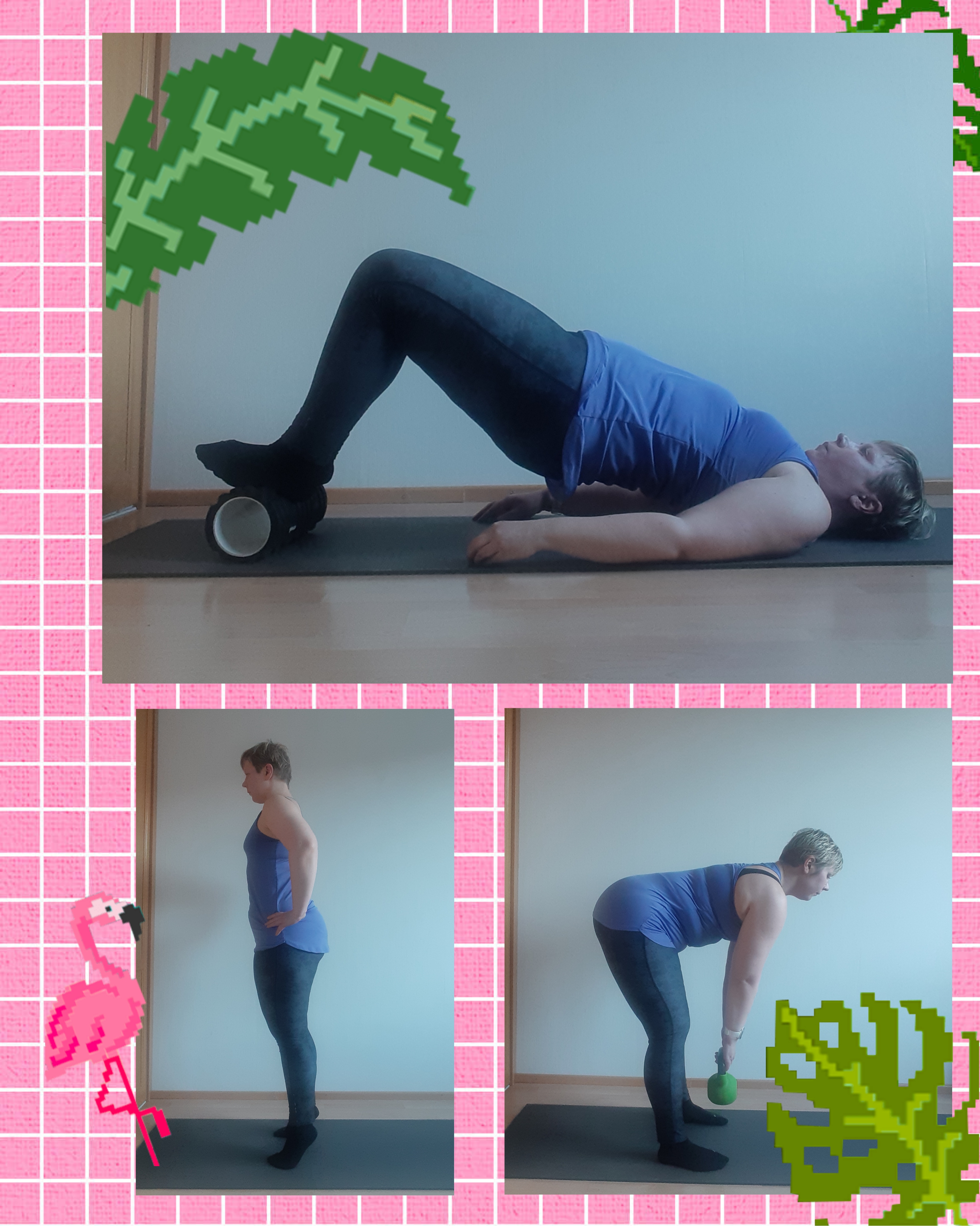 Perjantaina tunsin itseni väsyneeksi, joten ajattelin tehdä puolituntisen lihaskuntotreenin. Otimme kolmen kaverini kanssa Fitfarmilta VHH-dieetin, ja siihen kuuluu myös treeniohjeet. Viime viikolla en ollut lukenut ohjeita kunnolla, ja tein kotitreenin kokonaan kun tarkoitus oli tehdä vuorotellen ala- ja yläkropan treeniä. No, eipä ole ensimmäinen kerta kun teen ensin ja luen ohjeet sitten :D Nyt tein alakropan treenin, meni siinäkin 40 minuuttia. 8 liikettä, 12 toistoa, 4 sarjaa, toistojen välissä 45 sekunnin tauko. On edelleen tehokas treeni, pakarassa tuntuu tänäänkin että toissapäivänä on treenattu :)